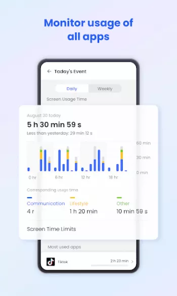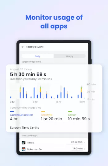 ◆ Real-time monitoring - Cast your child's device screen to your phone in real-time to find out what apps they're using in school and the use frequency to prevent them from getting addicted to their phone.