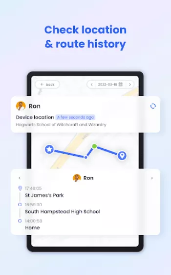 ◆ GPS location tracker - With the high-accuracy location tracker, you can track your child's location on the map and see their historical route for the day. Ensure your child is stay safe and they won't visit any high-risk places.