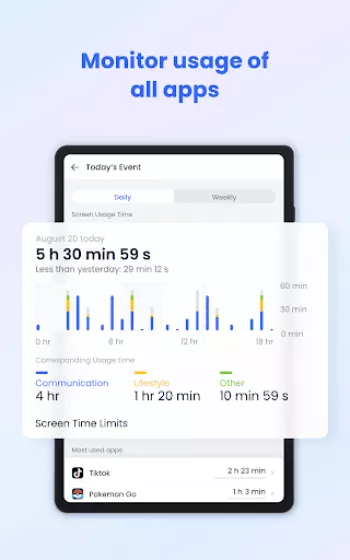 ◆ Screen time - Set up a unique schedule for your child to limit their use time and prevent them from focusing on it while having class.