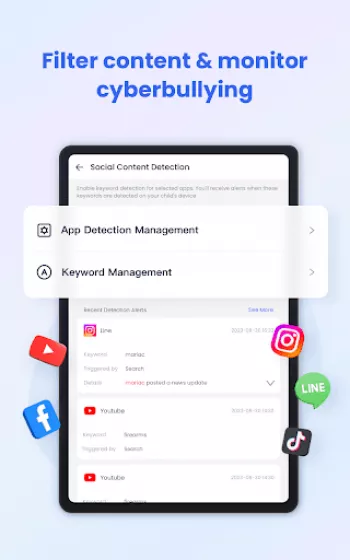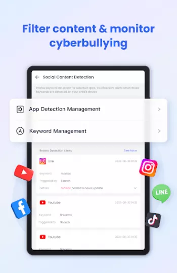The latest online monitor, content filter, and anti-cyberbullying functions have been released, which could improve the performance of kids' safeguards and ensure your loved child is always under perfect protection built by you.