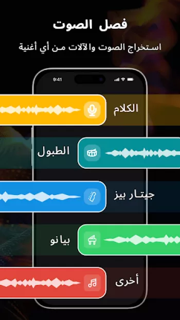 🎛️【موسيقى الريمكس】افصل الأغاني إلى مسارات متعددة وأنشئ مزيجًا منها. أنشئ أغاني الريمكس ومزيجات الدي جي بخطوات بسيطة. ادمج وامزج المسارات لإنشاء موسيقى وأغانٍ رائعة!