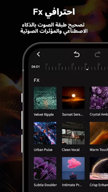 🎐【مؤثرات صوتية】مؤثرات صوتية احترافية مدمجة، استخدم معادل الصوت، ومصدى الصوت، وكورس، وكسارة بت، وفلانجر، وأوفر درايف، وفيزر، وفلتر، ومؤثرات أخرى لتعديل الصوت وتحقيق التوازن الصوتي المثالي.