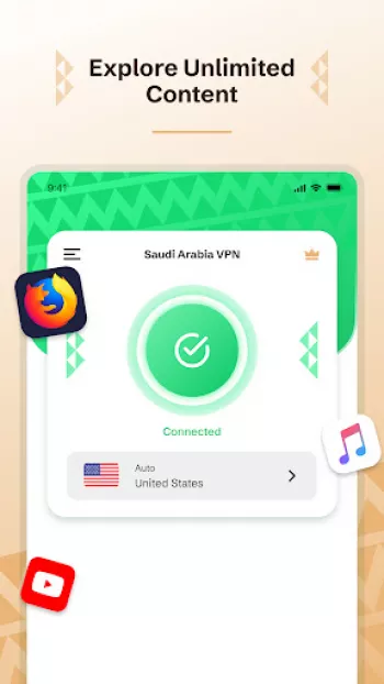 Saudi Arabia VPN is a free and unlimited privacy and security VPN software solution for all Android users. VPN servers include Dubai Oman, all Middle East. If you want protection on public WiFi Hotspots or a fast VPN for your Android device, KSA VPN Proxy has it all.