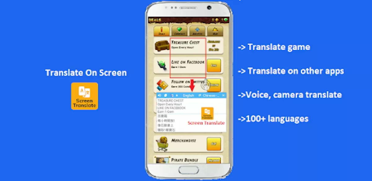 يمكن لـ Translate On Screen ترجمة أي نص على أي تطبيق، من خلال عمليات بسيطة للغاية، ولن تحتاج إلى التبديل ذهابًا وإيابًا بين تطبيقات الترجمة. تعمل خدمة Screen Translate على إزالة جميع الحواجز اللغوية مع دعم أكثر من 100 لغة
