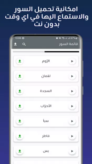 إنه تطبيق جيد جدا وممتاز ويحتوي على شيوخ كثيرة وبس هناك مشكلة ان يوجد اعلانات ارجو حل هذه المشكلة أنا بعطيه خمس نجوم ولكن هو يستحق اكثر من خمس نجوم...