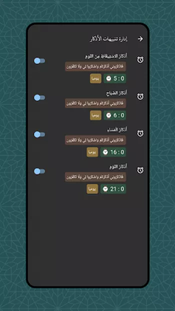 ما شاء الله تصميم شيك وعصري وهادف وبسيط يشعرك بالسعادة أهنئكم علي هذا التصميم ولكن نرجو 1- ربط اذكار بعد الصلاة بمواعيد الصلوات 2-زيادة اشعارات الذ...
