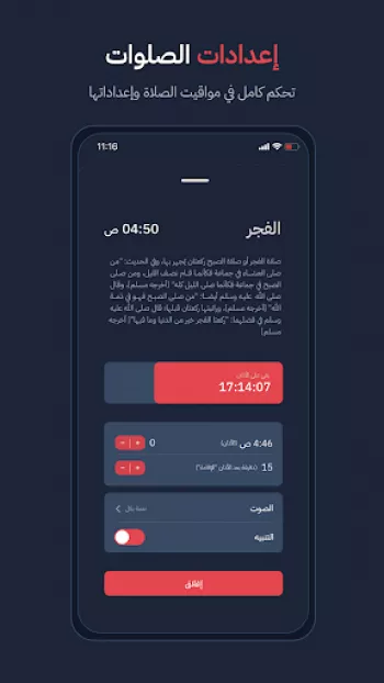 البرنامج جميل وسهل جزاكم الله خيراً وأهم ما فيه خلوه من الإعلانات لكن يحتاج إضافة ميزه ضرورية وهي تفعيل وضعية الصامت أثناء الصلاة مع إمكانية تحديد ...