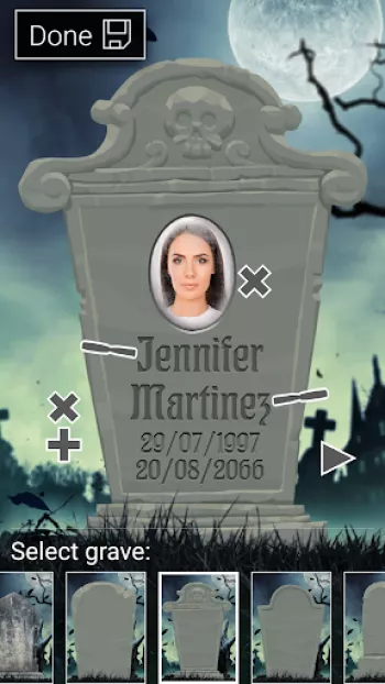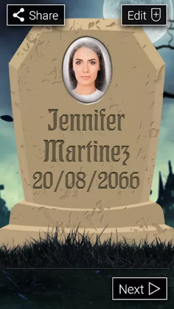 بجانب حساب تاريخ الوفاة المتوقع، يقدم تطبيق "اكتشف المدة المتبقية لك" ميزة فريدة تكمن في إمكانية إنشاء وتخصيص شواهد القبور الافتراضية. بعد حساب التاريخ المتوقع، يمكن للمستخدم الانغماس في تجربة مرحة عبر تصميم شاهدة قبر تمثل الخيار الشخصي للتصميم النهائي. يحتوي التطبيق على مجموعة متنوعة من الشواهد التي يمكن الاختيار من بينها، بعضها مجاني والآخر يتطلب دفع رسوم بسيطة، وتتنوع الخيارات بين المواد المستخدمة مثل الجرانيت والرخام والحجر الرملي، ما يسمح للمستخدم بتخصيص التصميم ليعكس طابعه الشخصي وأذواقه. بالإضافة إلى ذلك، يستطيع المستخدم تغيير النص المنحوت على الشاهدة ليشمل أسمه ولقبه واختيار النقوش أو الرسائل التي يود أن تحملها الشاهدة، مما يمنح المستخدم شعورًا بالسيطرة والتفرد حتى في هذه التجربة الرمزية. يمكن أيضًا إضافة الصور الشخصية إلى الشاهدة، سواء كانت من المعرض الشخصي أو تم التقاطها مباشرة باستخدام الكاميرا، مما يعطي تجربة جذابة وتفاعلية تعبر عن شخصية وفكر المستخدم. يتيح التطبيق أيضًا فرصة مشاركة التصاميم مع الأصدقاء من خلال وسائل التواصل الاجتماعي، مما يفتح باب الحوار والنقاش حول التجارب الشخصية للمستخدمين بلطف ومرح.
