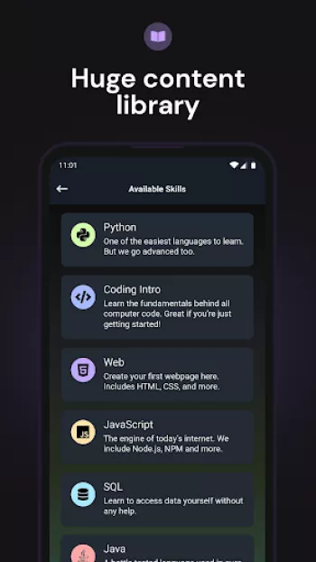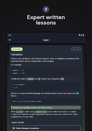 فيه روابط خارجيه يسمحلك تزيد من معرفتك و تطلع عليها، فيه شرح عميق و دقيق اكثر من اي تطبيق ثاني، يسمحلك تختار اكثر من لغه وحده لدراستها، مبدئيا ممتا...