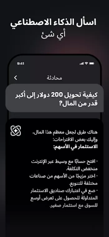 تطبيق "Ask AI" لتجربة التفاعل الاجتماعي المثيرة يقدم طريقة فريدة للاستمتاع بأدوات الذكاء الاصطناعي في خلق مساحات جديدة للتواصل والتعلم. تم تصميم التطبيق ليكون الرفيق الأمثل في رحلة الاستكشاف المعرفي والابداع الشخصي بفضل ما يقدمه من مزايا متطورة قائمة على نموذج GPT-4o. في قلب هذه التجربة، يتيح التطبيق للمستخدمين خوض محادثات تفاعلية ليس فقط مع التطبيقات الاعتيادية ولكن أيضاً مع شخصيات تاريخية، مشاهير، ورواد في مختلف المجالات بشكل افتراضي. تكمن قوة التطبيق في استجابته الذكية القادرة على تقديم اقتراحات مفيدة ومعلومات قيمة حول أي موضوع يُطرح عليه. ومن خلال الجمع بين العناصر التفاعلية والفورية، يتحول التطبيق إلى منصة غنية للتفاعل والإلهام.