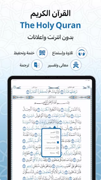 ختم القرآن الكريم هو واحدة من التجارب الروحية والمعنوية العميقة التي يسعى المسلمون لتحقيقها بشكل دوري. تقديم أدوات مساعدة مثل التطبيقات الرقمية يساهم في تبسيط وتتبع عملية الختمة بدقة. تتبع مسار الختمة يساعد المسلم في وضع خطة لينجزها مع تحقيق أعلى درجات الفهم والاستيعاب، بعيدًا عن العقبات التقنية أو الانشغالات اليومية. يوفر التطبيق إمكانية تنزيل القرآن كاملًا بصوت وصورة مما يتيح للمستخدم قراءة واستماع الأجزاء المفضلة لديه حتى في غياب الإنترنت، مما يعزز من فرص النجاح في خاتمة القرآن الكريم. وبالنسبة لأولئك الذين يسعون لدراسة النصوص بعمق، يمكنهم العثور على التفاسير والترجمات بلغات متعددة، مما يتيح لهم تفاعل أعمق مع النصوص والاستفادة من التجربة القرآنية المتكاملة. يعتبر ختم القرآن من أعظم الإنجازات التي يمكن تحقيقها، حيث يمنح الشخص شعورًا بالرضا والارتباط القوي بشعائره الدينية. تحميل تحميل لـ Android لتجربة حفظ وقراءة قرآن ممتعة ومثمرة ومباركة.