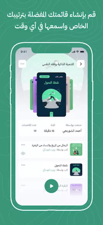يعتبر تطبيق "أخضر" أداة فعالة لكل شخص يسعى لتحقيق تقدم ملحوظ في حياته الشخصية والمهنية. يقوم التطبيق بتوفير ملخصات لأفضل الكتب وأكثرها مبيعًا في مجالات متعددة بشكل نصي وسمعي، ما يساعدك في تكوين فهم شامل عن الموضوعات التي تهتم بها وتطوير مستواك المعرفي. يمكن استخدام التطبيق أثناء ممارسة الأنشطة اليومية مثل السفر، التمارين الرياضية، أو حتى الأعمال المنزلية، وذلك بفضل توافر المحتوى بصريًا وسمعيًا. كما يمكنك إنشاء قوائم تشغيل مخصصة تلائم احتياجاتك واهتماماتك، مما يمنحك تجربة استخدام شخصية وفعالة. هذه الخصائص تجعلك قادرًا على الاستفادة من كل لحظة من وقتك واستغلالها في رفع كفاءتك المعرفية، ما يدعم فرصك في التفوق والنجاح في مختلف المجالات الحياتية والمهنية.
