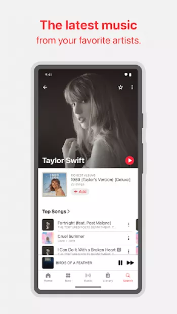 تطبيق الموسيقى الرائد هو أكثر من مجرد منصة للاستماع إلى الأغاني؛ إنه رفيق الحياة الموسيقية الذي يوفر تجربة الاستماع المثلى لكل عشاق الموسيقى حول العالم. باستخدام تقنية الصوت المحيطي مع Dolby Atmos، يتيح التطبيق للمستخدمين اختبار الطاقة الحقيقية للموسيقى والاستماع إلى الأصوات كما لو كانت تحيط بهم من كل جانب. يتيح التطبيق الوصول إلى 100 مليون أغنية، بالإضافة إلى الآلاف من قوائم التشغيل المصممة بعناية والمحتوى الأصلي المقدم من الفنانين المعروفين والمحبوبين. هذه المزاعم ليست مجرد وعود فارغة؛ إنها تجربة تجدها فريدة من نوعها للذين يقدرون جماليات الصوت في كل نغمة ومع كل إيقاع. هذا التطبيق يجمع بين الفن والتكنولوجيا في تناغم مثالي، حيث يقدم كلمات الأغاني بشكل دقيق ومرفق مع الإيقاع للمستخدمين الذين يحبون الغناء مع موسيقاهم المفضلة. ولتحقيق الاستفادة القصوى من هذه التجربة، يتيح لأصدقائك فرصة المشاركة في صنع قوائم التشغيل والتعاون عليها معًا. كما أن هناك خاصية تعرف بـ SharePlay، والتي تتيح للمستخدمين التحكم في الموسيقى وسماعها بشكل مشترك أثناء القيادة، مما يجعل كل رحلة تجربة موسيقية فريدة. محبو الموسيقى يمكنهم أيضًا تحميل الموسيقى المفضلة لديهم ليستمعوا إليها بدون الاتصال بشبكة الإنترنت، مما يوفر لهم حرية الاستماع أينما كانوا، سواء كانوا في الطائرة أو على الشاطئ أو في أي مكان آخر. بهذا تنتهي المعاناة من انقطاع شبكة الواي فاي أو فقدان الإشارة؛ لأن الموسيقى دائمًا في متناول اليد. ولا يتوقف الأمر هنا؛ بل يتمتع المستخدم بتجربة استماع متواصلة وسلسة بفضل ميزة التحول التدريجي بين الأغاني دون انقطاع السماع. وعند انتهاء قائمة التشغيل، تعمل خاصية التشغيل التلقائي على إبقاء الموسيقى مستمرة دون توقف أو تدخل.