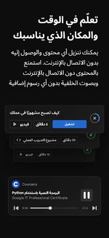 تقييم تطبيق Coursera: Coursera هو تطبيق تعليمي رائد يقدم فرصة رائعة للأفراد لاكتساب المعرفة وتطوير مهاراتهم في مجموعة واسعة من المجالات. يعتبر Cour...