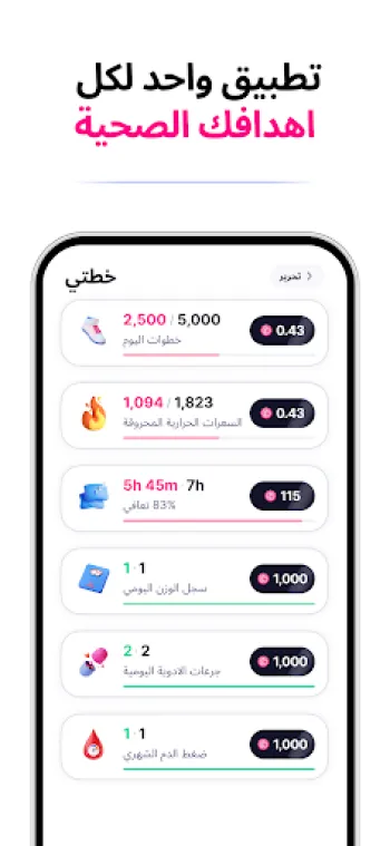 عندما قمت بتنزيل برنامج الفي كنت أظنه برنامج عداد الخطى وفقط لكن عندما دخلت التطبيق وجدته متابعا للصحه العامه والأمراض الشائعه وعنده موضوعات صحيه ب...