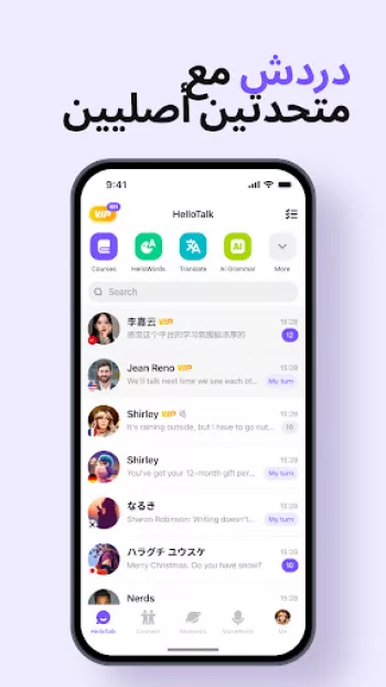 تطبيق HelloTalk يقدم مقاربة ثورية في تعلم اللغات من خلال خبرات التواصل الواقعية التي يوفرها. بمجرد تنزيل تطبيق HelloTalk على جهازك، سواء كان تحميل لـ Android أو تحميل لـ iPhone، تجد نفسك مندمجًا في بيئة تعليمية تحتوي على ميزات ترجمة مدمجة، ومحادثات مباشرة مع متحدثين أصليين. التطبيق يوفر غرف صوتية تعليمية تفاعلية حيث يمكنك الانضمام إلى نقاشات حول مواضيع متعددة، ما يسمح لك بتحسين مهارات المحادثة وكسر حاجز الخجل في بيئة داعمة. علاوة على ذلك، تقدم HelloTalk خاصية البث المباشر مع مدرسي لغة خبراء، حيث يمكن للمستخدمين التفاعل مع المدرسين مباشرة وطرح الأسئلة. هذا النوع من التعليم التفاعلي يعزز ليس فقط مهارات اللغة، وإنما أيضًا يمنح الثقة للمستخدمين للتعبير عن أفكارهم وآرائهم دون خوف. ومن خلال التواصل اليومي مع الأشخاص من جميع أنحاء العالم، فإن التعلم لا يقتصر فقط على اللغة، بل يمتد ليشمل بناء علاقات جديدة قائمة على الفهم العميق والاحترام المتبادل بين الثقافات المختلفة.