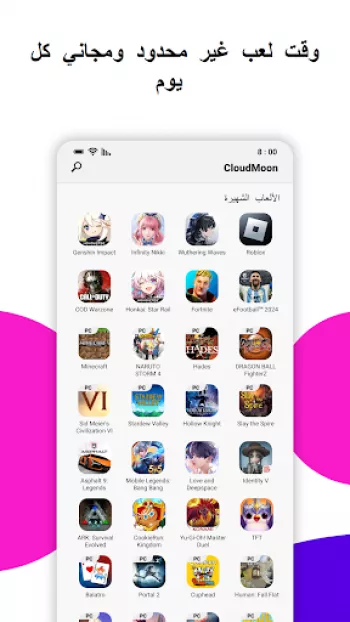 تطبيق رائع جداً فيه جميع الالعاب ولاكن الوقت قليل نرجو اصلاح هذا المشكله
