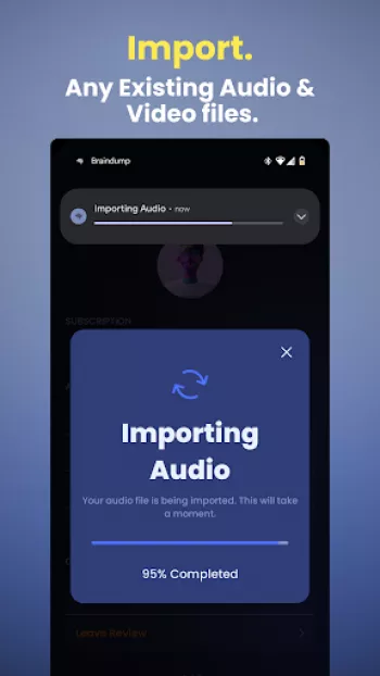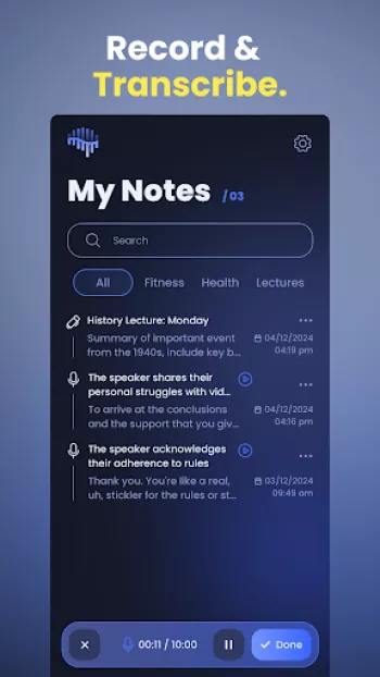 تحظى ميزة استيراد الملفات الصوتية والفيديو بمكانة مميزة ضمن وظائف هذا التطبيق الفعّال، حيث يتمكن المستخدمون من جلب ملفاتهم الصوتية والفيديو المخزنة على أجهزتهم وتحويلها إلى نصوص قابلة للبحث بكل سهولة ويسر. هذا يتيح للمستخدمين تحويل مقابلاتهم، ومحاضراتهم، والبودكاست، والتسجيلات الشخصية إلى نصوص دون الحاجة لإعادة تسجيلها كملاحظات صوتية. علاوة على ذلك، يمكن للمستخدم تكوين نظام تنظيم مميز لملاحظاته الصوتية باستخدام التصنيفات المخصصة، مما يسهل عملية البحث والاستخدام لاحقًا. يمكنك البحث عن ملاحظة معينة في غضون ثوانٍ، ما يجعل إدارة المعلومات والمعرفة عملية أكثر سلاسة وكفاءة. كل هذه القدرات تجعل من التطبيق شريكًا لا غنى عنه لمن يسعون للترتيب الفعال والوصول السريع لجمعات أفكارهم وأعمالهم.