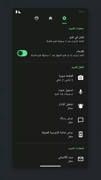 تطبيق جيد أقترح إضافة خاصية عند المحاولة الدخول للهاتف بشكل الخاطئ او البصمة فتح البيانات و الويفي و الموقع تلقائياً مزال التطبيق في بعض الاحيان لا...