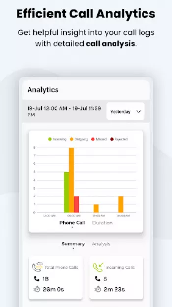 من الأمور المثيرة حول مدير المكالمات وتحليل الاتصال لأندرويد هي قدرته على تقديم تحليلات مكثفة للمكالمات تساعد على تحسين الاستخدام الشخصي والمهني للهاتف. من خلال تصنيف السجلات إلى مجموعات مختلفة مثل مجموع المكالمات، المكالمات الواردة، الصادرة، المكالمات المفقودة، مكالمات اليوم، مكالمات الأسبوع، والمكالمات الشهرية، تُمكن الأداة المستخدم من تحليل أداء الاتصال بشكل مفصل ومركز. تمثل هذه الميزة أداة قيمة ليس فقط للمستخدمين الفرديين الذين يرغبون في مراقبة استهلاكهم الشخصي للمكالمات، بل أيضًا للشركات التي تعتمد على الاتصالات كجزء أساسي من نموذج أعمالها. على سبيل المثال، يمكن لمديري المبيعات الاستفادة من هذه التحليلات لتحديد أنماط الاتصال الأكثر فاعلية، أو لتقييم أداء الفريق. باستخدام هذه الأداة، يمكن للمستخدمين تحديد الاتجاهات وتحليل البيانات الكبيرة بسهولة، مما يعزز تجربتهم ويُمكنهم من اتخاذ قرارات مستنيرة بشأن استراتيجيات الاتصال لديهم. وهذه التحليلات تقوي الروابط بين الأفراد والمؤسسات، لأنها تعد منصة لتبادل المعلومات والأفكار والتقييمات بشكل يساعد في دفع عجلة التغيير والتطوير المستمر.