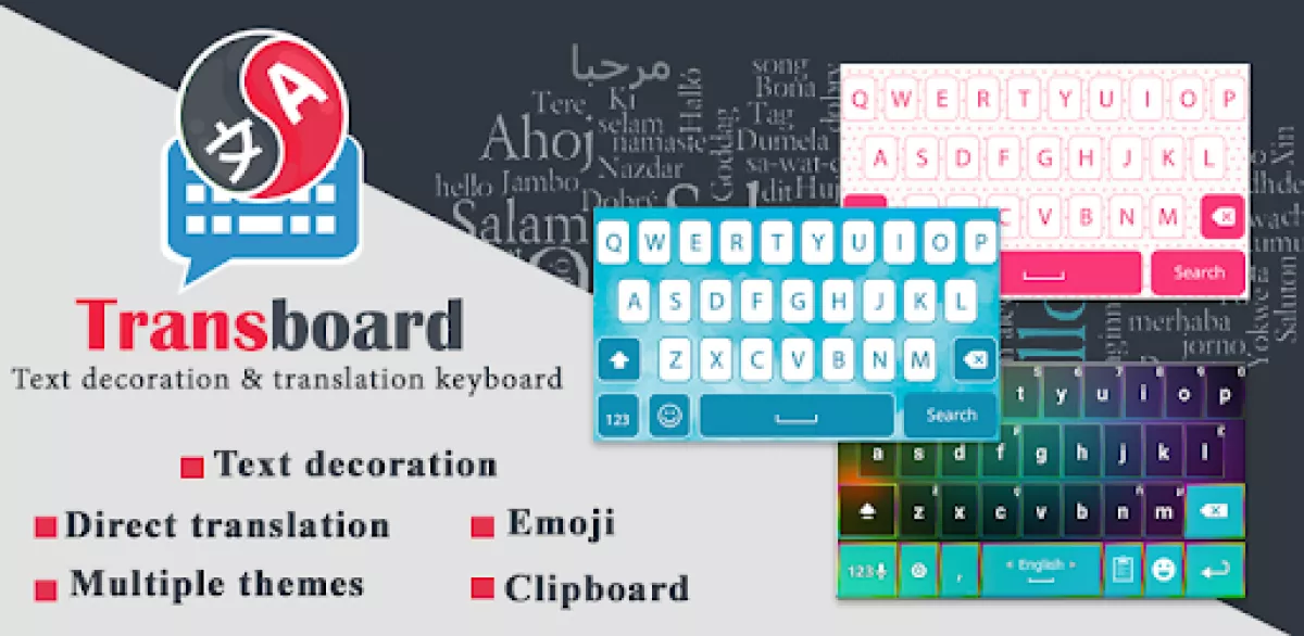 Communicate now or speak any language you like with the Transboard keyboard. You can directly write and speak in all languages within your application without having to use external translation applications that you can use in chat, chat, social networking and any application you want. Translation directly via the keyboard does not need To copy and paste or to use other applications the translation will appear in writing directly and can switch between languages easily and all languages are available as well as contains emoji emoji and Japanese Emoticons and smile and a clipboard with themes