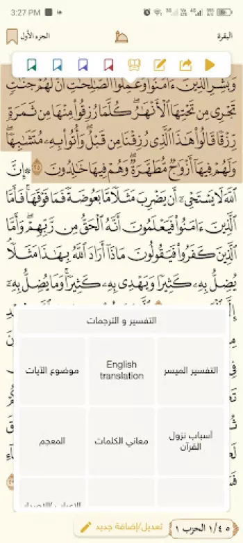 The Golden Quran application transcends basic digital Quranic representations by incorporating a wide array of features that make it a multipurpose tool for Muslims around the globe. By integrating a 'Muslim Recognition' facility, the app supports spiritual development beyond Quranic recitation with an expansive library of supplications, including morning and evening du’as. This feature promotes regular engagement with Islamic supplications, encouraging users to integrate these practices into their daily lives. The application’s capability to offer interpretations directly on the verse page showcases its innovative design. Users can tap on any verse to reveal explanations and contextual information, facilitating an instantaneous understanding that aligns with real-time reading. Furthermore, the app’s intuitive design ensures that information is well-organized, minimizing user effort in navigating between sections. Another standout feature is the app’s intelligent memory system for reading positions, enabling continuity from one session to the next without loss of place. Whether academic study, casual reading, or spiritual reflection is the goal, these diverse tools collectively provide an enriching, comprehensive digital Quranic engagement. This suite of features makes the Golden Quran app a virtual spiritual companion for users, supporting myriad aspects of Islamic faith practice.