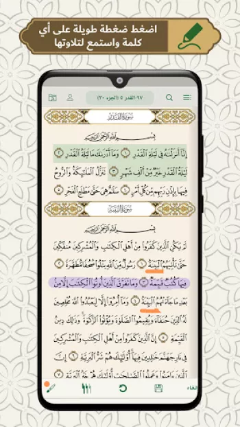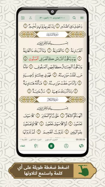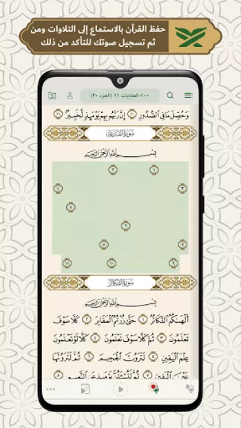 The educational benefits of the Quran Memorization Helper for Android are multifaceted, catering to both individual learners and educational institutions. By supporting the reading of the Quran using the Uthmani script as found in the King Fahd Print, the app ensures that users engage with an authentic text format, crucial for accurate memorization. Additionally, the app supports the Tajweed rules in Quranic reading, a feature that is indispensable for those keen on reciting the Quran with correct articulation and intonation, reflecting the oral tradition of recitation. The inclusion of Hadith books such as Sahih Bukhari and Muslim, along with other significant Islamic texts and mutoons like Tuhfat Al-Atfal and the Shatibiyyah poem, positions the app as a comprehensive learning resource. This range of content fosters a deeper understanding of Islamic teachings, allowing users to memorize not just the Quran but also a wealth of prophetic teachings and scholarly writings. Technically, the app is robust, offering a user-friendly interface that makes navigation intuitive and learning uninterrupted. Users can enjoy uninterrupted playback of entire pages, chapters, or the whole Quran, providing a seamless auditory learning experience. An innovative feature is the ability to operate the app in the background, where users can continue listening to recitations with full details of the current verse displayed on the lock screen. This ensures that learning can continue without distractions, a crucial aspect welcome to busy lifestyles. Importantly, the app records progress, showing users their memorization status by surah or part, enabling them to monitor their journey and motivating continuous improvement. The app's structured approach to periodic repetition also allows learners to reinforce their memorization in a manner that aligns with cognitive learning theories for long-term retention.