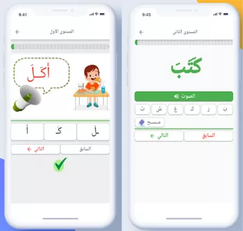 A noteworthy aspect of the "Fun Learning for Kids" application is its comprehensive module on language learning, which is meticulously designed to engage children interactively. This module emphasizes the importance of bilingual education, providing resources for mastering both Arabic and English efficiently. The Arabic section begins by immersing children in learning the Arabic alphabet using interactive songs, which not only facilitate memorization of individual letters but also introduce them to simple words starting with those letters. This holistic inclusion of auditory learning techniques promotes better retention through musical mnemonic devices. The application uses an interactive board where children can practice writing letters, providing a virtual experience of tracing letters on paper using the digital board and eraser tool, reinforcing motor skills in a digital landscape. Added to this, the app features a quiz mechanism where children listen to a letter's sound and identify its correct form from multiple options, also showing a related image to anchor the letter in a familiar context. To further support the reading skills, words are dissected into syllables with vowels pronounced clearly, aiding children in understanding the phonetic structures within Arabic. Spelling activities complement this by empowering children to construct dictated words from a selection of jumbled letters on the screen, providing immediate feedback, either celebratory when correct or corrective when mistakes are made. Delving further into the complexities of Arabic, the program explores the multifaceted nature of letter positions within words—initial, medial, or final—ensuring that children grasp the dynamic appearance of letters. Furthermore, tests assess children's spelling proficiency and sentence completion based on visual and auditory cues, tracking their progress over time. Transitioning to the English language section, children engage with both upper and lower case letter variations, hearing proper pronunciations and associating visuals with words. A built-in mini-dictionary organizes a diverse array of English vocabulary into child-friendly categories—animals, colors, shapes, and more—ensuring a broad linguistic exposure. Additionally, exercises involving matching words with their antonyms or scrambled counterparts foster critical thinking and vocabulary expansion. This section also covers basic conversational phrases, paired with translations, nurturing early conversational skills imperative for real-world interactions. This language module stands as a foundational tool designed to establish linguistic foundations in young learners, anchored by a blend of engaging activities and educational depth.