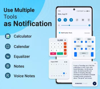 The Movement Notification Tool excels in its provision of efficiency and flexibility, primarily through its innovative use of notification integration. This involves a unique approach wherein the app is not confined to the traditional model of opening and closing applications, but instead, functions through notifications that are readily accessible from any screen. The app offers a range of tools including a calculator, calendar, equalizer, notes, and voice notes, all of which are designed to be accessed within the notification shade. This model promotes a higher level of flexibility, as users no longer need to disrupt their current activity to switch between apps. Take for instance the calendar functionality; users can view their schedule and seamlessly add appointments without exiting their current task, thus enhancing workflow continuity. Moreover, the equalizer facilitates swift audio adjustments directly from the notification, catering to the immediate customization of audio experiences without pausing music or video playback. Another aspect is the ability for users to take quick notes or voice memos, all from the notification interface, providing an incredibly convenient solution for those moments when inspiration strikes or rapid recording is necessary. This flexibility ensures that the user's attention remains focused on the task at hand, maintaining a smoother and more consistent engagement with their device. The Movement Notification Tool fundamentally reshapes how these everyday tools are utilized, emphasizing user-centric design and operational flexibility.