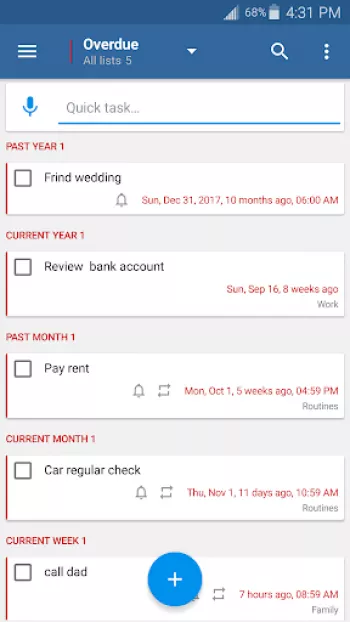 Great app. I really like how the recurring tasks feature is free. I've downloaded lots of apps trying to find one where I wouldnt need to have a mo...