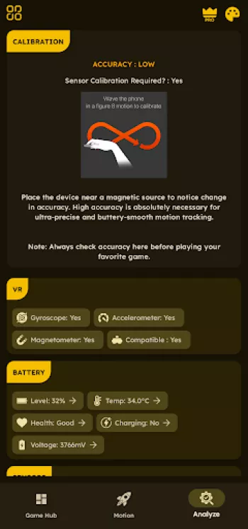 Good app to fix the gyro lag! Thank you, I cleared data and cache to restore the purchase and now it's being pro as well on the other devices!