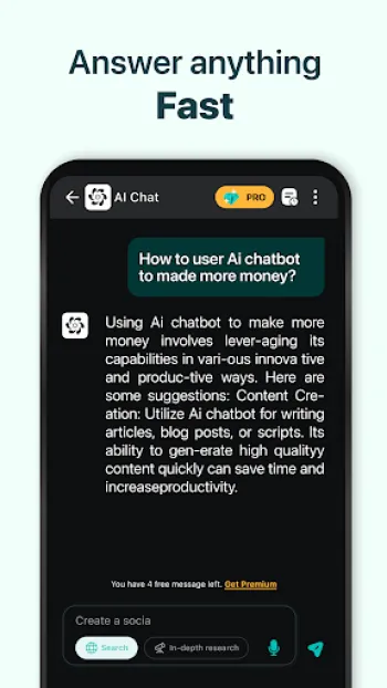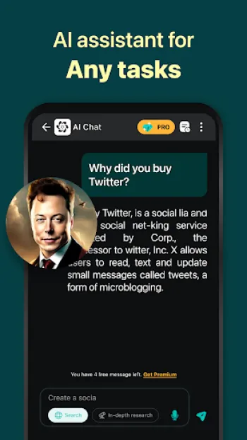 The AI provides pretty accurate answers and if you run out of messages you can watch an ad to gain 3 more messages .The reason I have it 4 stars is...
