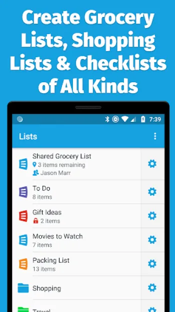 Excellent list making app! Lists can be organized in separate categories. There are many options, plus other optional features like ordering your g...