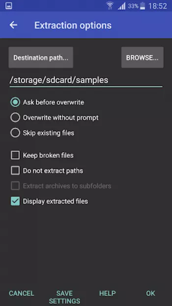 RAR works great. Extracting/archiving is efficient, fast, and easy to use. RAR rarely shows advertisements and has a nice low price for those wanti...