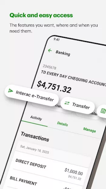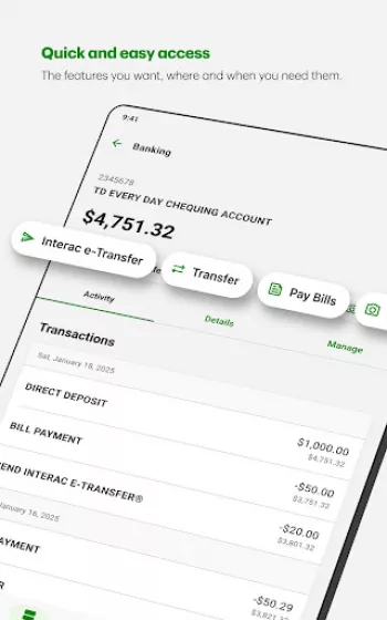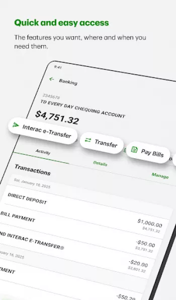 overall, a great app. what I would recommend is the bank development team to include an option to schedule Interac e-transfers so that in busy days...