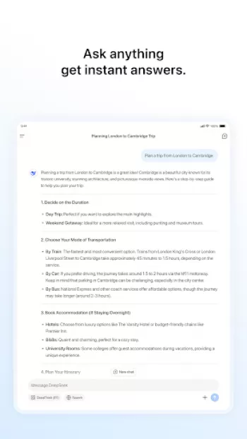 The Smart Chat App's genius lies in its ability to be incredibly versatile, meeting a vast array of user needs seamlessly. Whether users are seeking answers to complex questions, organizing daily tasks, or needing real-time translations during travel, the app is equipped to handle it all. For instance, its multifunctionality shines in scenarios where professionals require on-the-go assistance—whether drafting messages quickly, scheduling meetings, or setting reminders, this app facilitates productivity without the need to switch between multiple platforms. The AI-driven insights derived from the DeepSeek-V3 model enable it to infer user preferences over time, suggesting functionalities based on recurrent behavior patterns. This means that the more you use the app, the more it aligns with your specific needs. Additionally, in interpersonal contexts, the Smart Chat App transforms the way we connect by acting as a linguistic bridge. Imagine a business executive who frequently travels internationally; language would typically pose a barrier in such interactions. However, with the app’s real-time language translation capabilities, communication barriers are eradicated, paving the way for smoother dialogues and better cross-cultural exchanges. Furthermore, it offers a personalized experience by integrating with personal calendars, thus keeping users informed of upcoming commitments and potential scheduling conflicts. Need to convert time zones or calculate budget allocations during a business trip? The app’s computational features effortlessly handle such tasks as well, ensuring you remain ahead in both personal and professional realms. By enabling such extensive functionality through a single interface, the app reduces cognitive load on users, careening through the complexities of modern living with efficiency and ease. It balances multifaceted capabilities with an intuitive interface that ensures all features are easily accessible, encapsulating the ethos of connecting smartly and simply without compromising on the power of advanced technology.