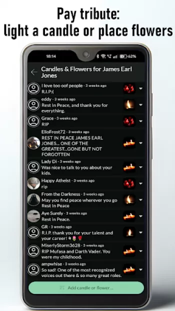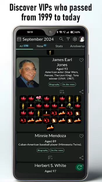 The RIP VIP app serves as a comprehensive platform for users who wish to remain informed about the deaths of celebrities and other notable figures worldwide. By offering detailed information such as biography, age, and cause of death, the app fulfills a significant demand for immediate, well-structured data. One of the core components of this app is its ability to synthesize detailed biographies and relay historical data, providing a rich contextual framework for understanding each individual's impact. Users can filter information by nationality or occupation, ensuring that their searches are tailored to specific interests, allowing for a deeply personal experience as they explore the lives and legacies of these figures. Furthermore, the app's function as a virtual cemetery enables users to pay their respects through symbolic gestures such as lighting virtual candles or placing flowers, thus configuring an online memorial space that reflects traditional forms of grieving in a digital environment. This feature illustrates a broader cultural shift towards digital commemoration, highlighting not only the significance of these public figures in personal narratives but also the evolving rituals of mourning in an increasingly online world. The app's inclusion of historical data dating back to 1999 is particularly valuable for those interested in tracking how the cultural and global landscape has altered with the passing of time, offering a unique perspective on how the deaths of significant figures have punctuated historical epochs. By giving users the tools to revisit past celebrity deaths occurring in specific months and years, RIP VIP provides a historiographical tool that illuminates the powerful relationship between celebrity culture, media coverage, and collective memory.