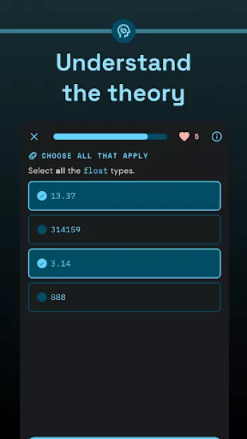 I like the app, it makes it fun to learn code and you get to practice everything you learn which is important to me because I'm a visual learner. A...