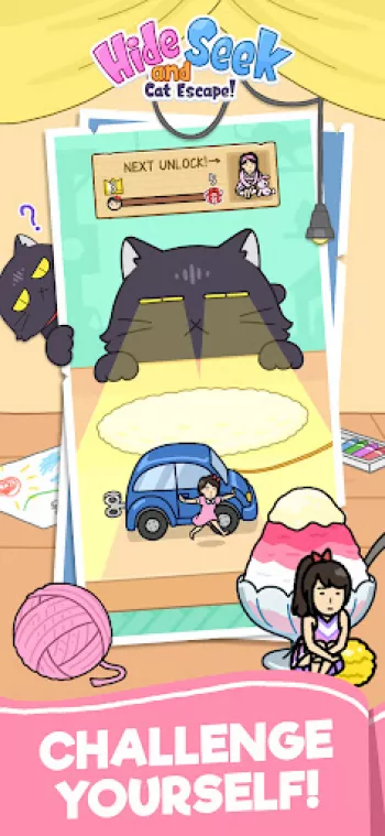 The appeal of Hide & Seek: Cat Escape extends beyond its visually stimulating world; it entices players with a series of complex challenges and puzzles that demand quick thinking, creative problem-solving, and strategic execution. Each level introduces a new dilemma, a unique hurdle that must be surmounted to avoid the ever-watchful eye of the kitty. These puzzles are ingeniously crafted to challenge not just reflexes but also the mind, promoting a deeper focus on strategy over brute force. Players are encouraged to see beyond the obvious, to experiment with their environment, and to adopt innovative solutions. For example, a level might require moving furniture subtly to create new hiding spots, or perhaps distracting the kitty using small, cleverly orchestrated disturbances. As players progress, they must anticipate the cat’s movements and preemptively devise methodologies to remain undetected. The game's reliance on stealth rather than confrontation is a testament to its focus on cerebral gaming. It creates an experience where every decision matters and every move has consequences, encouraging players to refine their tactics continually. The layers of difficulty also cater to a wide range of players, making it accessible to newcomers while still offering a challenge to seasoned gamers seeking a tactical deep dive.