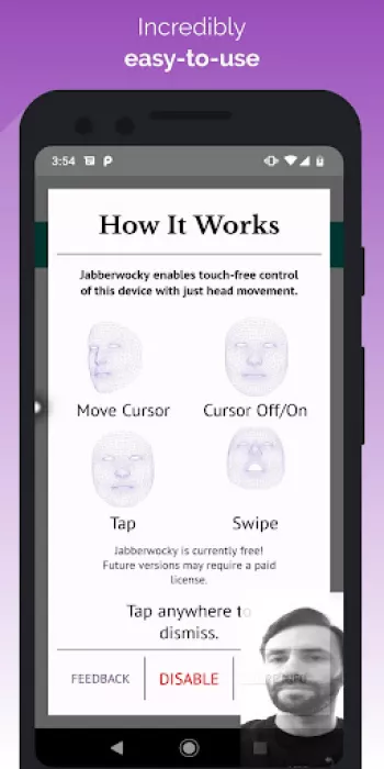 Jabberwocky's ability to transform head and facial gestures into device commands opens up a vast array of potential applications that can significantly impact the lives of those with motor disabilities. For users with ALS or other similar conditions restricting hand movement, using a mobile device becomes an exercise in autonomy and empowerment, as they are no longer dependent on third-party assistance for simple yet pivotal actions such as browsing the internet, sending messages, or even social networking. The psychological impact of restoring this independence cannot be overstated; technological inclusion fosters a sense of normalcy and participation in a digital society that often sidelines individuals with disabilities. Educational institutions and workplaces can leverage this technology to support integrated learning and working environments, where users can actively participate without requiring extensive modifications to the existing infrastructure. The activation of accessibility tools like Jabberwocky by educational software allows students to engage with digital curriculums, research, and collaborative platforms with newfound ease. Moreover, it extends the possibility of recreational and artistic expression, where users can enjoy interactive games or engage with creative software, where command inputs are as intuitive as moving one's head. This technology also plays a pivotal role in communication applications, ensuring that users have the means to maintain social connections, which is paramount for mental health and emotional well-being. As accessibility gains prominence, the hope is that the insights derived from Jabberwocky can influence broader industry standards, encouraging developers to prioritize inclusivity in a way that benefits not just users with disabilities, but everyone through enhanced usability design. As more platforms embrace these new paradigms of interaction, the landscape for users with disabilities becomes increasingly promising, underpinned by technology that recognizes and adapts to their unique capabilities.