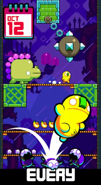 In the world of mobile gaming, where the market is saturated with countless options vying for the attention of users, "Leap Day" by Nitrome manages to emerge as a distinguished contender. The core concept of the game revolves around a novel idea that combines both simplicity and complexity in a manner that is rarely seen in platformers. At its heart, "Leap Day" is a fast-paced action platformer that guarantees a new level every single day. This unique feature sets "Leap Day" apart from other games that typically offer a fixed number of levels upon release. Players are greeted daily with a fresh challenge that promises to test their skills, keeping the gaming experience continuously invigorating. The promise of "a brand new level every day" until the "end of time" is not just a hyperbolic marketing strategy; it's a commitment to providing players with a daily dose of adventure that evolves over time, avoiding the monotony that often plagues even the best-designed games. Moreover, the fact that every player across the globe plays the exact same level each day fosters a sense of community and competition whereby players can compare scores, strategies, and achievements. This communal experience turns the solitary nature of mobile gaming into a shared adventure. Each level is not only set in a unique location but also comes with new traps and monsters, ensuring that players approach each challenge with a fresh mindset. The predictability of unpredictability is what makes "Leap Day" intriguingly addictive. This endless stream of new content means players must continuously adapt and refine their strategies, offering a great platform for developing problem-solving skills and strategic thinking. Furthermore, the playful pixel art design, with its vibrant colors and retro aesthetic, captures a sense of nostalgia while providing modern gameplay mechanics. The retro-inspired graphics are more than just a nod to classic games of the past; they are a celebration of gaming history that appeals to both veteran gamers and newcomers alike. The one-touch gameplay is meticulously designed to ensure ease of play, allowing the game to be accessible to everyone, including those who might not typically gravitate towards gaming. This simplicity does not equate to lack of depth; rather, it ensures that the challenge lies in the level design and the player's skill, not in the complexity of controls. With "Leap Day," Nitrome has successfully crafted a game that combines innovation with tradition, inviting players into a world that is both familiar and radically new every day.